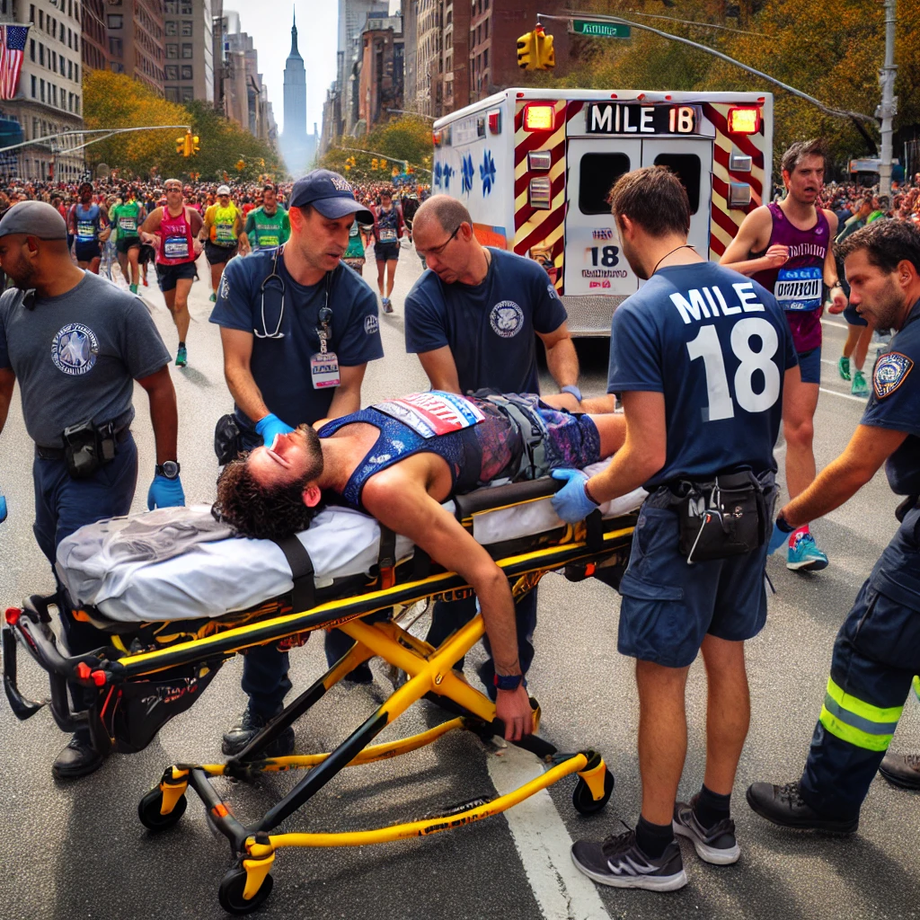 At mile 18, David suddenly collapsed. Spectators gasped, and fellow runners waved for medical personnel. Within seconds, a first-aid team was by his side. He was unconscious, breathing shallowly, and showing signs of distress. The team had no time to waste.