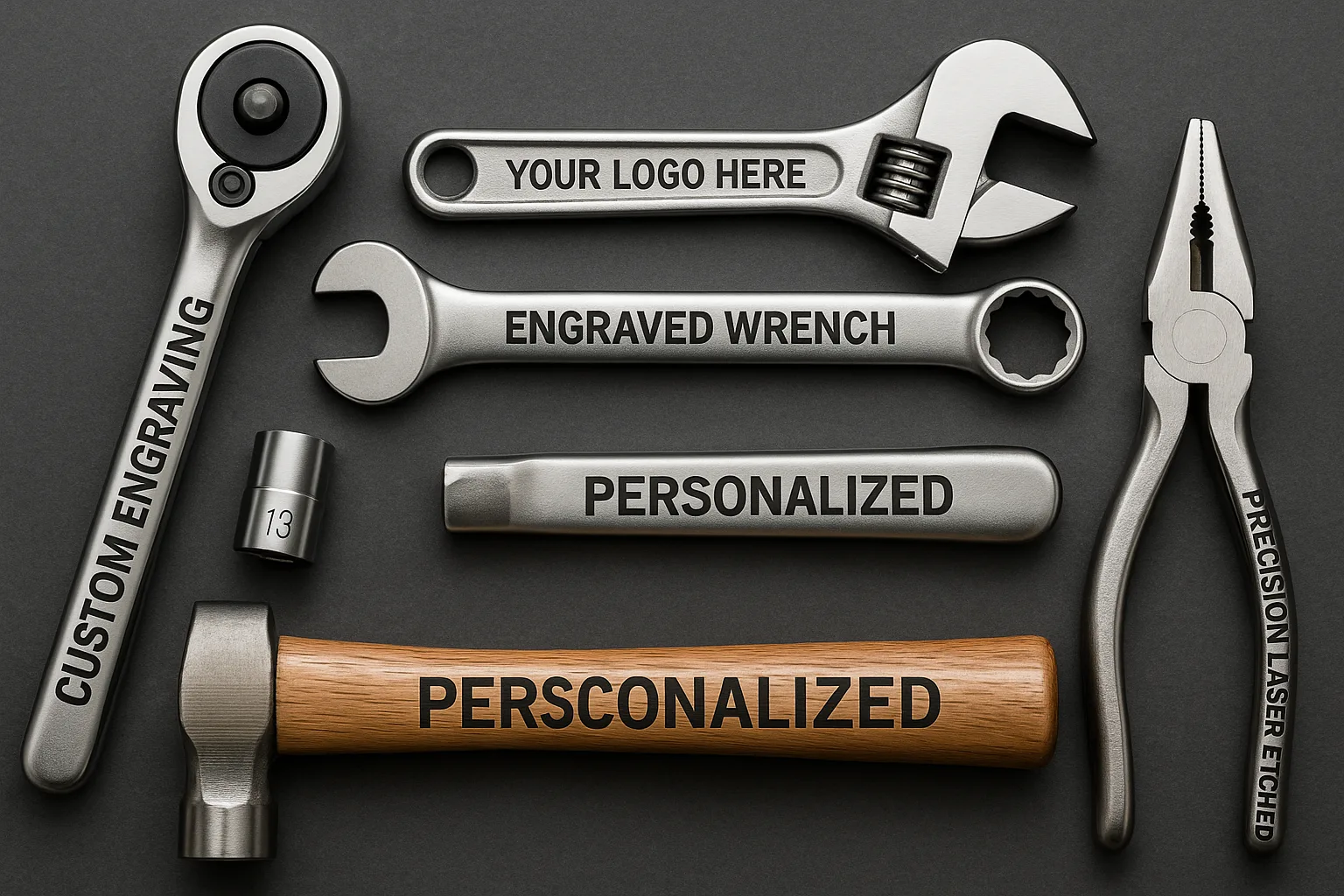 We engrave on hand tools, wrenches, sockets, pliers, hammers, and more — creating durable marks that stand up to daily use in garages, workshops, and job sites.